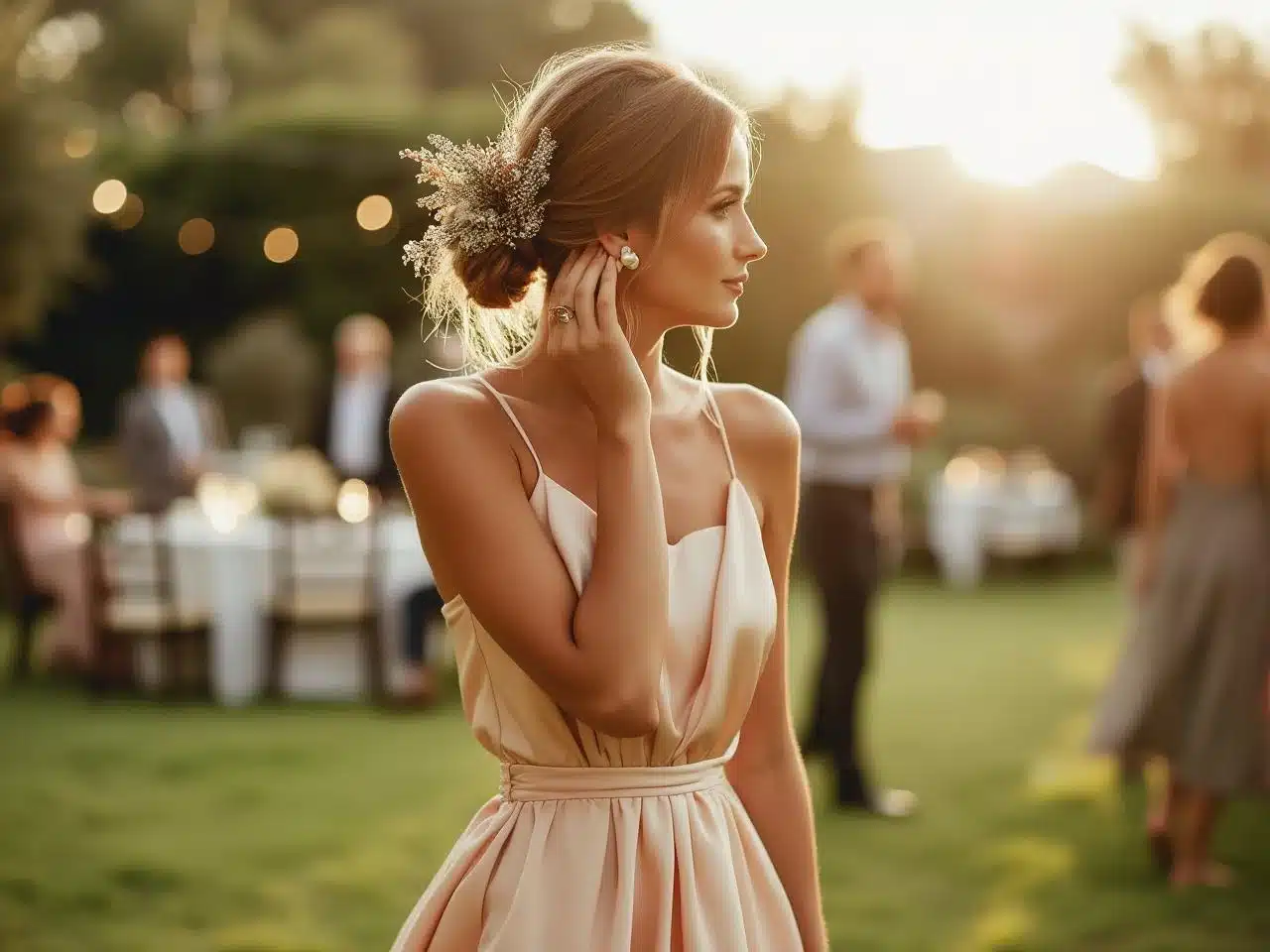 Une nuque dégagée, une ligne de cou mise en valeur et un port de tête presque royal. Le **chignon mariage invitée** confère en quelques minutes une allure soignée qui traverse les styles, du cocktail guindé au brunch champêtre. Contrairement aux boucles lâchées qui s’affaissent dès la première danse, le bun reste en place du vin d’honneur jusqu’au bouquet final, sans nécessiter de retouches compulsives devant le miroir.