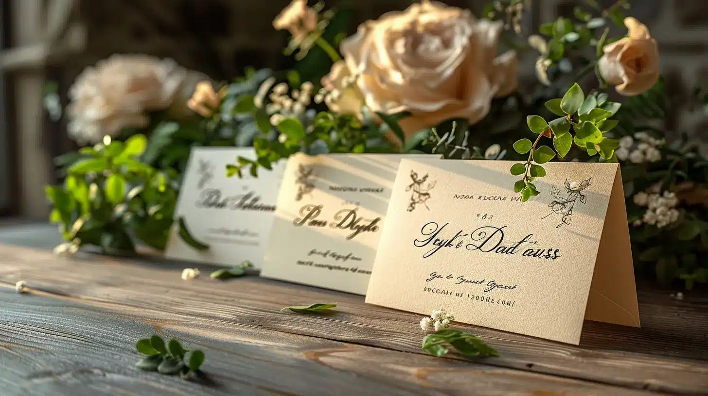 Les couleurs et les textures jouent un rôle crucial dans l’harmonisation de la typographie avec votre décoration. Si vous avez choisi une palette de couleurs naturelles, comme le vert olive et le beige, associez-les à une police romantique mariage dans des tons similaires pour maintenir une cohérence esthétique. Les textures peuvent également être mises en avant avec des polices vintage mariage imprimées sur du papier recyclé ou du carton kraft.