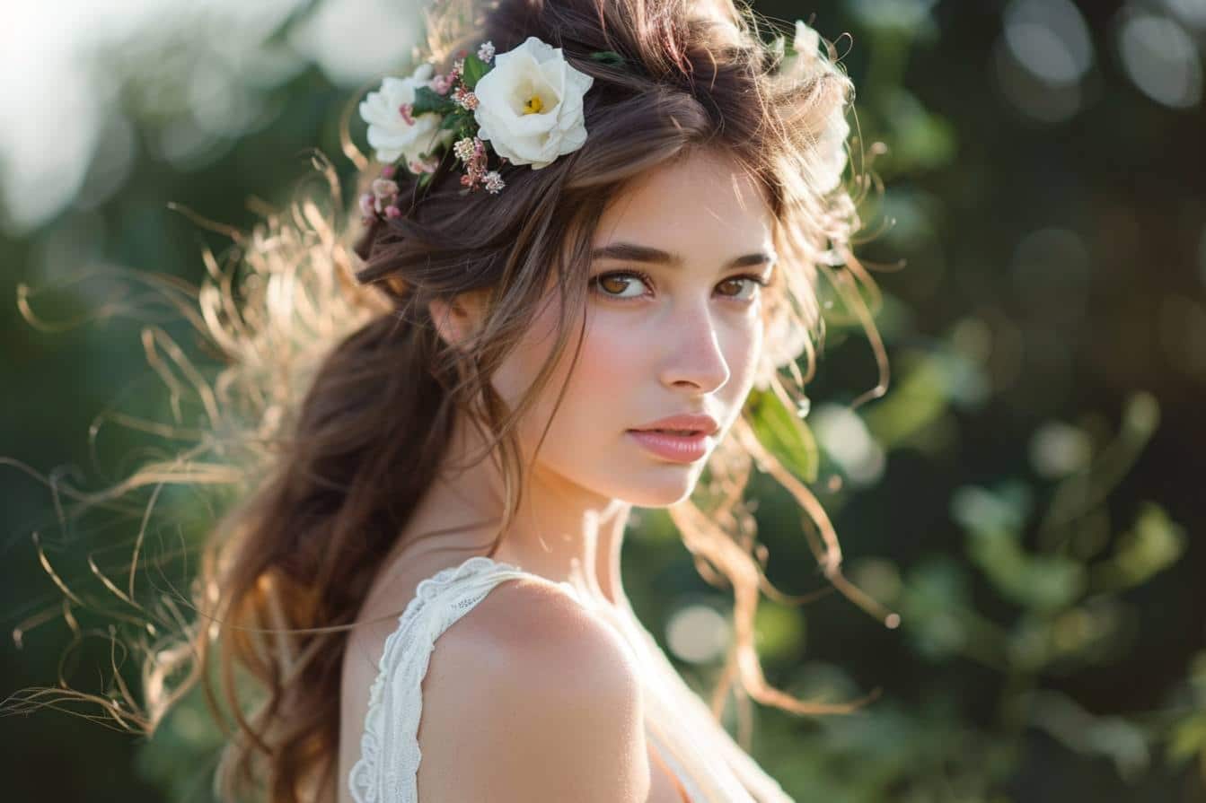 Si vous souhaitez opter pour une coiffure bohème rapide pour tous les jours, pensez à laisser vos cheveux lâches avec quelques ondulations naturelles. Ajoutez une couronne de fleurs ou un bandeau délicat pour sublimer votre style. Ces inspirations coiffures bohèmes romantiques sont idéales pour celles qui veulent capturer l’essence de la bohème tout en restant fidèles à leur propre personnalité et à leur style unique. Que vous choisissiez une tresse, un chignon ou des cheveux lâches, l’essentiel est de vous sentir belle et authentique en ce jour spécial.
