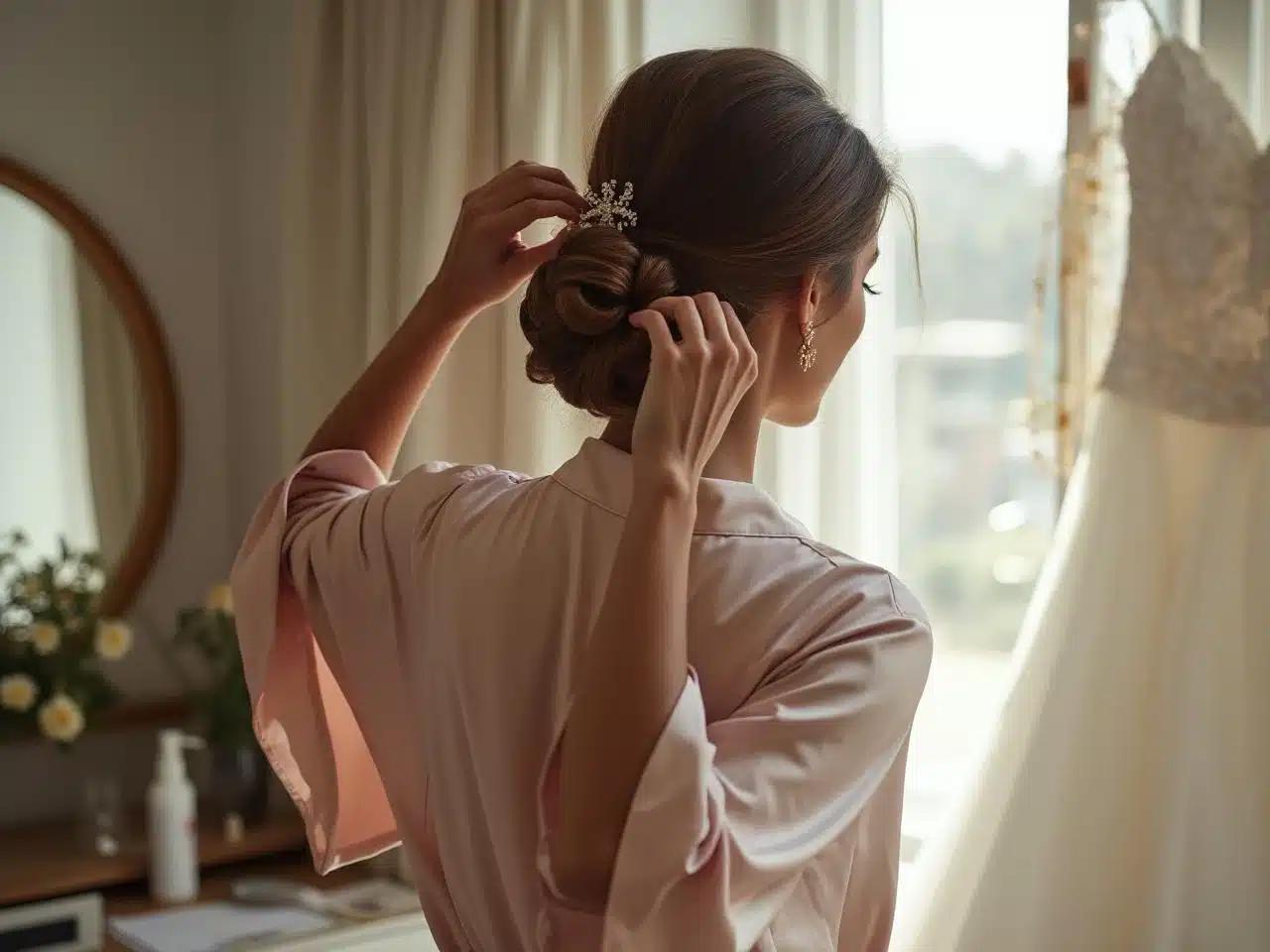 Le DIY offre aussi la liberté d’intégrer des touches culturelles, familiales ou écoresponsables : peigne vintage hérité d’une grand-mère, petites roses séchées du jardin, barrettes façonnées à la main. Chaque détail raconte une histoire et se marie naturellement avec la robe. Et si la météo tourne à l’orage, on sait exactement comment replacer une épingle ou réactiver une boucle, sans attendre qu’un professionnel revienne à la rescousse.