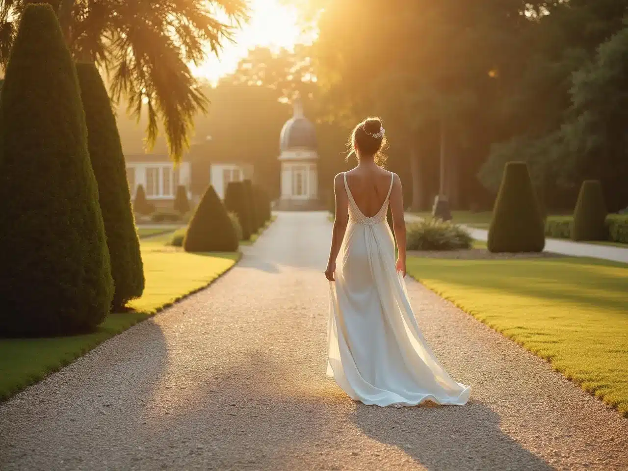 Dernier réflexe : une fois les photos faites, accrochez discrètement l’ourlet arrière avec une patte prévue à cet effet, la robe ne balaiera plus le gravier.