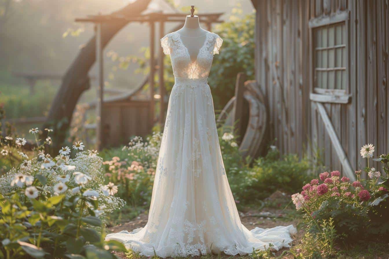 Enfin, si vous souhaitez donner une seconde vie à votre robe champêtre en dentelle, pensez à des retouches créatives. Un ourlet raccourci peut transformer une robe de mariage en une tenue élégante pour un événement spécial. De plus, la dentelle peut être teinte pour créer un look totalement nouveau. Ces astuces permettent de prolonger l’histoire de votre robe, tout en respectant l’élégance et le style unique qui la caractérisent.