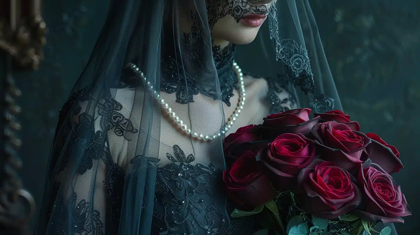 Les bijoux sont essentiels pour sublimer une robe de mariée sombre. Optez pour des pièces en or blanc, argent ou platine qui apporteront une touche de lumière à votre tenue. Des perles ou des pierres précieuses comme les diamants, les saphirs ou les émeraudes peuvent également ajouter une dimension luxueuse. Si vous aimez le style mariage gothique, des bijoux avec des motifs victoriens ou baroques peuvent accentuer ce thème avec élégance.