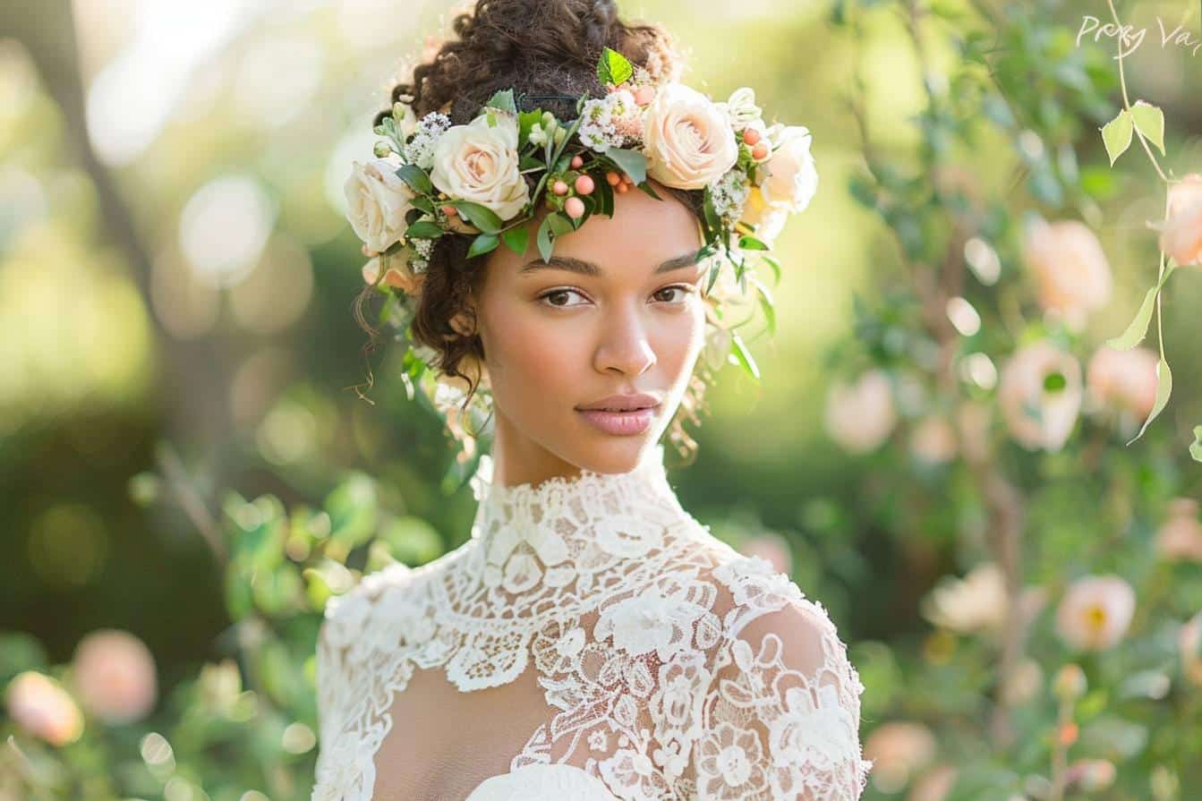 La couronne de fleurs pour une mariée est bien plus qu’un simple accessoire ; elle incarne une part de poésie et de naturel qui sublime la beauté de la mariée. Parmi les styles populaires, on trouve la couronne de fleurs mariage bohème, composée de fleurs sauvages et de feuillages, parfaite pour un mariage en plein air ou un thème champêtre. Ce style est apprécié pour son aspect décontracté et sa capacité à s’harmoniser avec des robes fluides et légères.