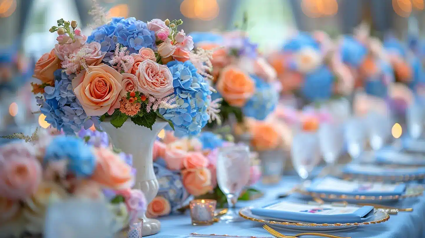 Les couleurs jouent un rôle essentiel dans la création de votre décoration mariage Disney. Optez pour une palette inspirée de votre conte préféré : des bleus et blancs pour un mariage Cendrillon, ou des tons dorés et rouges pour évoquer Aladdin. Les fleurs aussi doivent être choisies avec soin. Des arrangements floraux luxuriants rappelant les jardins enchantés de La Belle et la Bête ou des compositions plus exotiques pour un thème inspiré du Roi Lion peuvent ajouter une dimension supplémentaire à votre décor.